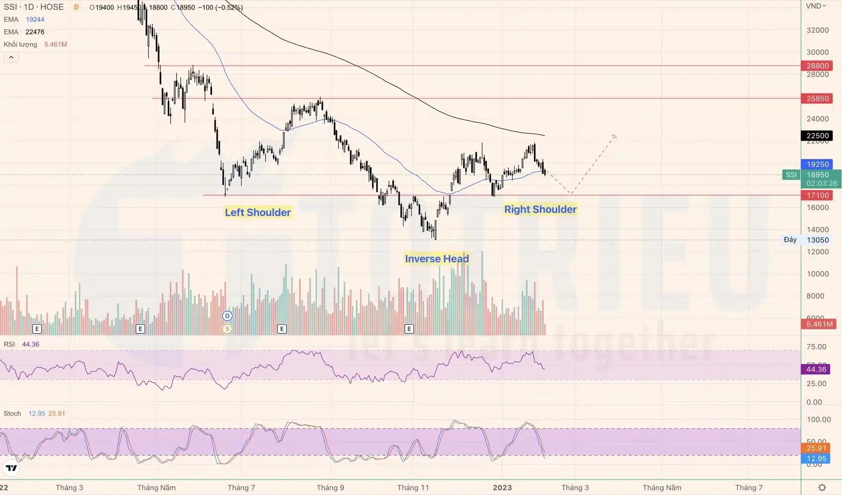 Cổ phiếu SSI với Vai – Đầu – Vai ngược