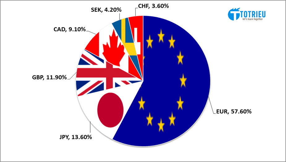 Rổ tiền tệ của US Dollar Index bao gồm 06 loại ngoại tệ với trọng số trung bình như sau: