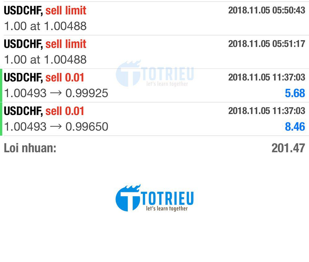 Kết quả lệnh USD/CHF như sau: