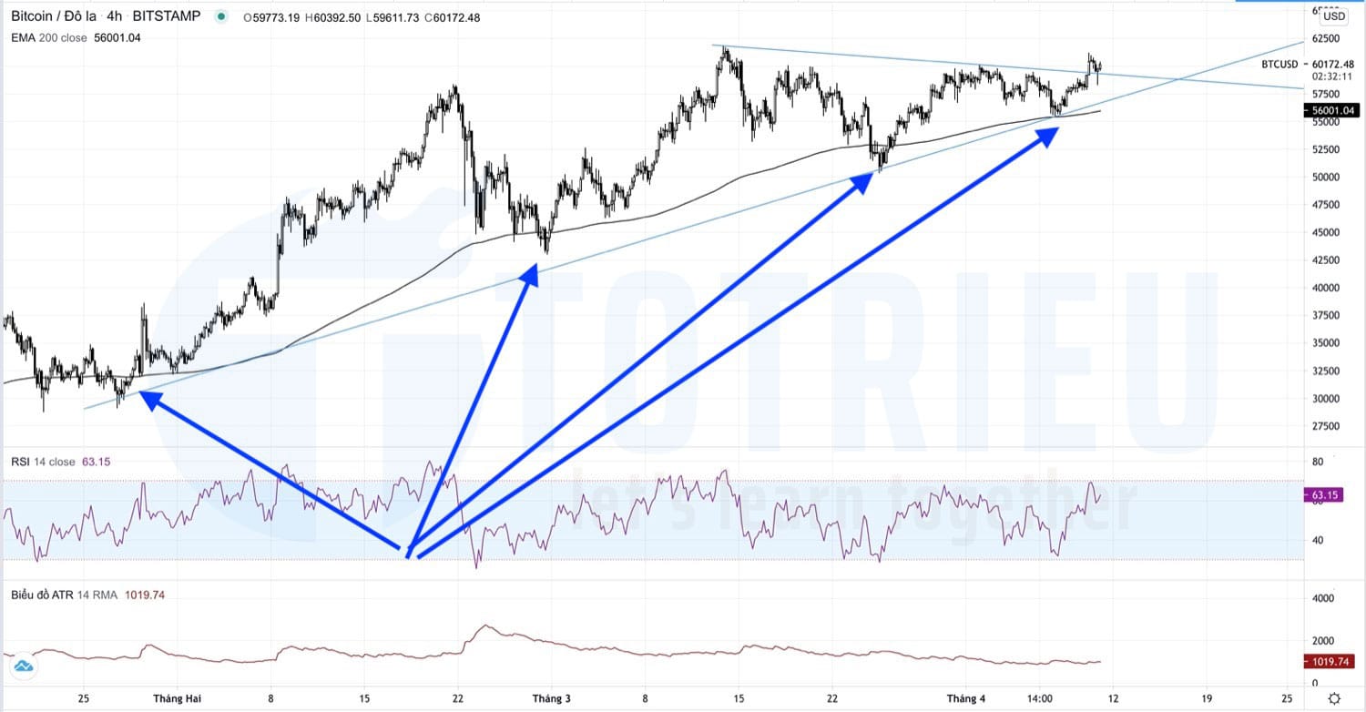 RSI đang nằm trong vùng tích cực cho phe Bull.