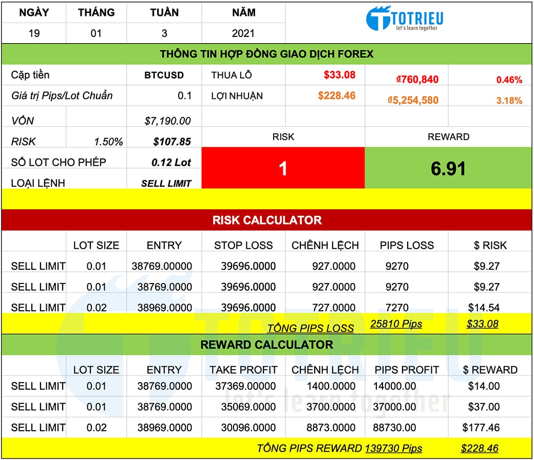 Và Tôi quyết định sẽ tham gia thị trường lần đầu tiên với Bitcoin – BTCUSD trong tuần thứ 3 năm 2021 với một giao dịch đánh xuống.