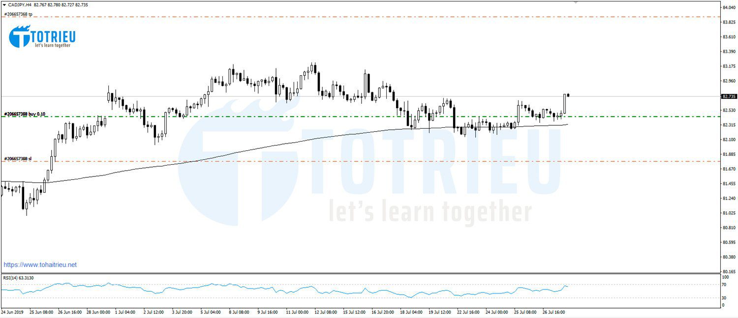 CAD/JPY đang cho thấy EMA200 giữ vai trò Hỗ trợ rất tốt. Tô đã Setup một lệnh giao dịch trên tài khoản Demo tại Exness mà các bạn có thể theo dõi thông số lệnh ở đây: