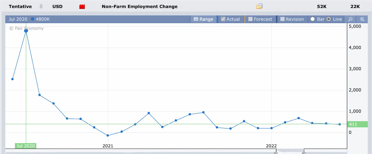 Lúc này, chỉ cần con số vượt 100K là đã đủ để thị trường coi là “tốt”. Fed khi đó tập trung nhiều hơn vào lạm phát và mức lương trung bình, do lao động vẫn duy trì trạng thái toàn dụng.