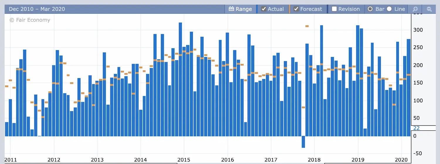 Khi đại dịch bùng nổ, NFP chứng kiến những con số chưa từng có trong lịch sử. Hàng triệu việc làm bị cắt giảm chỉ trong một tháng, và giai đoạn phục hồi sau đó cũng ghi nhận những báo cáo hàng triệu việc làm mới.