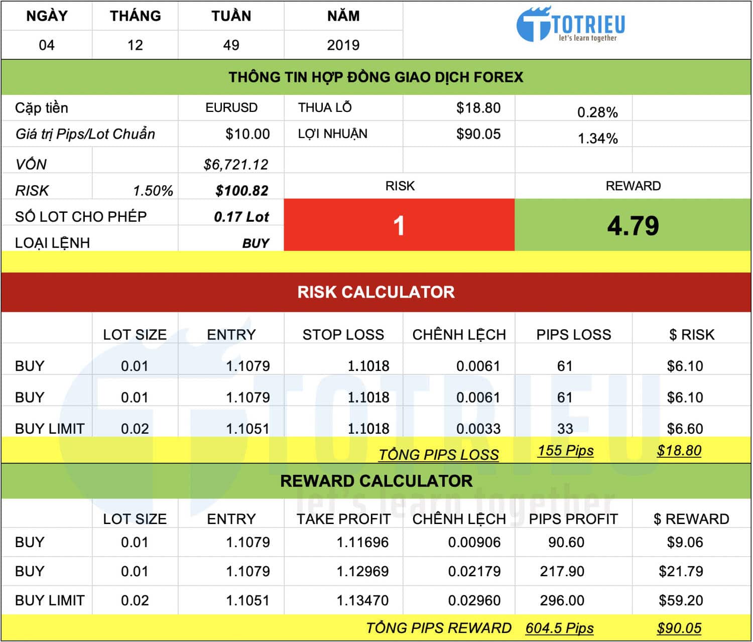Với các phân tích trên, Tô sẽ quyết định setup lệnh chờ với EUR/USD như sau: