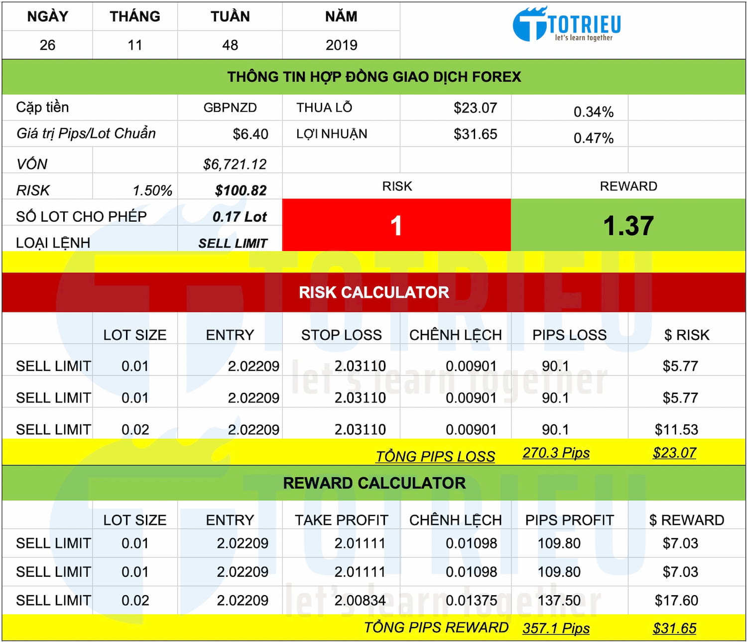 Với các phân tích trên, Tô sẽ quyết định setup lệnh chờ với GBP/NZD như sau: