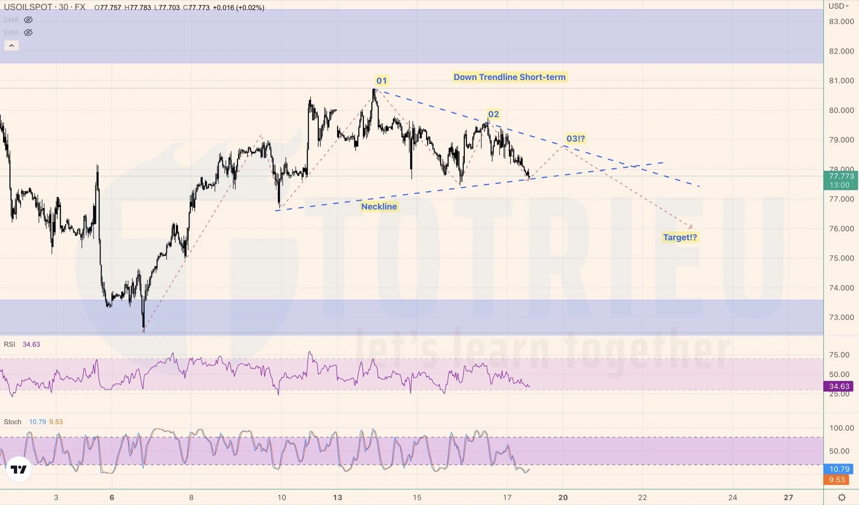 Ngày 17-02-2023, Tôi kỳ vọng sẽ chờ bán dầu tại $78.69 với mục tiêu $76.00.