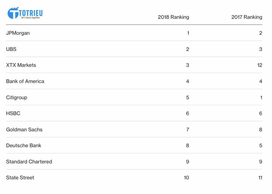 Tháng 05 năm 2018, JPMorgan đã soán ngôi của Citigroup để trở thành nhà giao dịch tiền tệ lớn nhất thế giới.