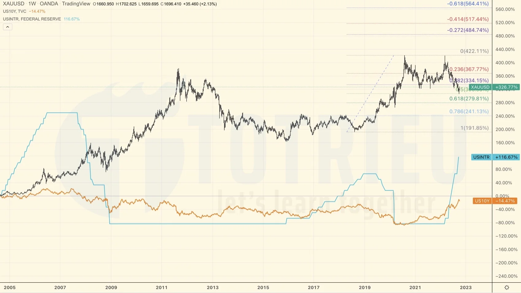 Cá nhân Tôi cho rằng bất kể chính sách là gì, thì sau đợt tăng lãi suất USD vào tháng 11, USD sẽ có khoảng 1 tuần phục hồi để các bố chốt lời sau đó sẽ quay đầu giảm khi lãi suất chạm trần và bắn đầu lăn dốc vào năm sau. Như vậy, thời điểm tiếp tục mua Vàng có thể sẽ là từ trung tuần tháng 11 và thời điểm nên mua mạnh vào tầm Q3-2023 khi lãi suất USD có thể sẽ quay đầu giảm giúp yếu tố lịch sử lặp lại.