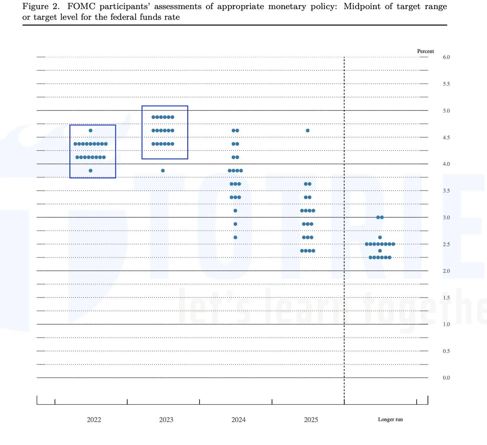 Lãi suất mục tiêu năm 2022: 4.25% tức là the FED có thể sẽ tăng thêm 100bps nữa cho phần còn lại của năm 2022