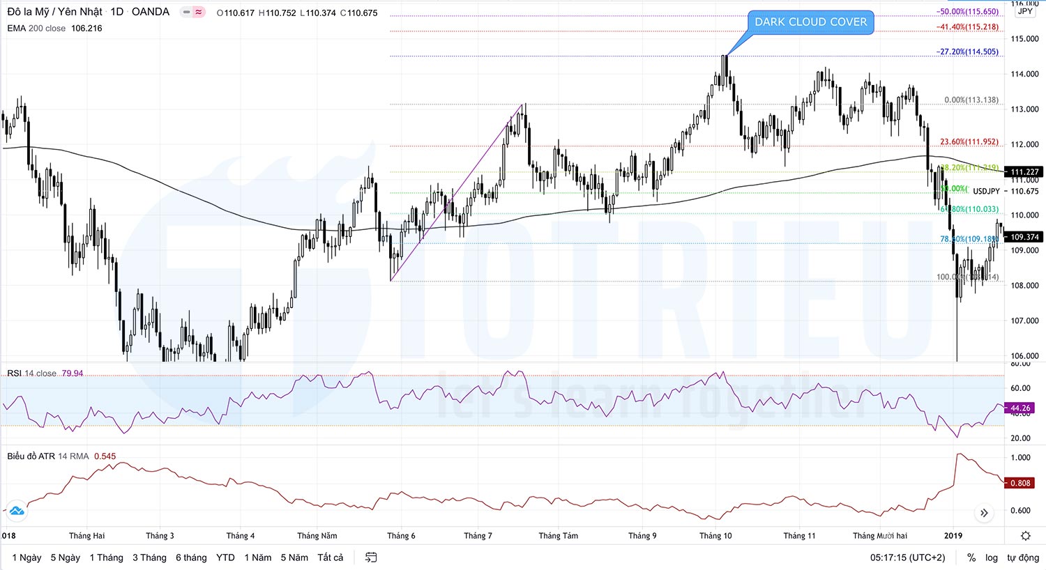 Phía trên chính là Dark Cloud Cover trên USDJPY mà Tôi giao dịch cách đây gần 3 năm.