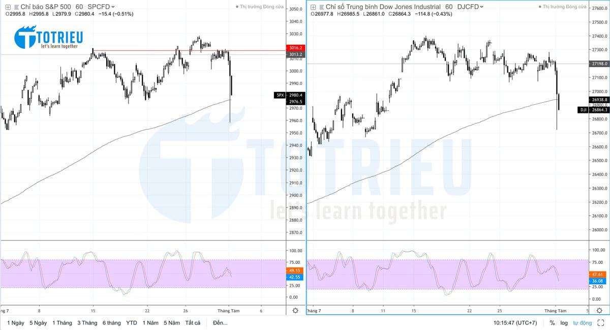 Dow Jones đã ghi nhận mức giảm trong một phiên lớn nhất kể từ ngày 31/5, S&P 500 cũng có diễn biến tương tự. Nasdaq trải qua đà lao dốc mạnh nhất kể từ cuối tháng 6.