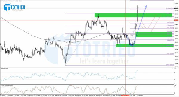 Ngay sau khi về kiểm tra Fibonacci Retracement 61.8% thì GBP/USD hưởng ứng tin tức Brexit sau chuỗi ngày dài bị dìm hàng đã bật tăng vô cùng mạnh mẽ.