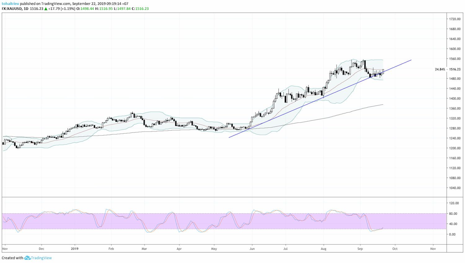 Như với biểu đồ kỹ thuật này thì Cậu Vàng dường như cố gắng breakout trendline nhưng chưa thành công và có thể tuần 39/2019 Vàng sẽ tiếp tục xu hướng tăng là xu hướng chủ đạo trong suốt năm 2019.