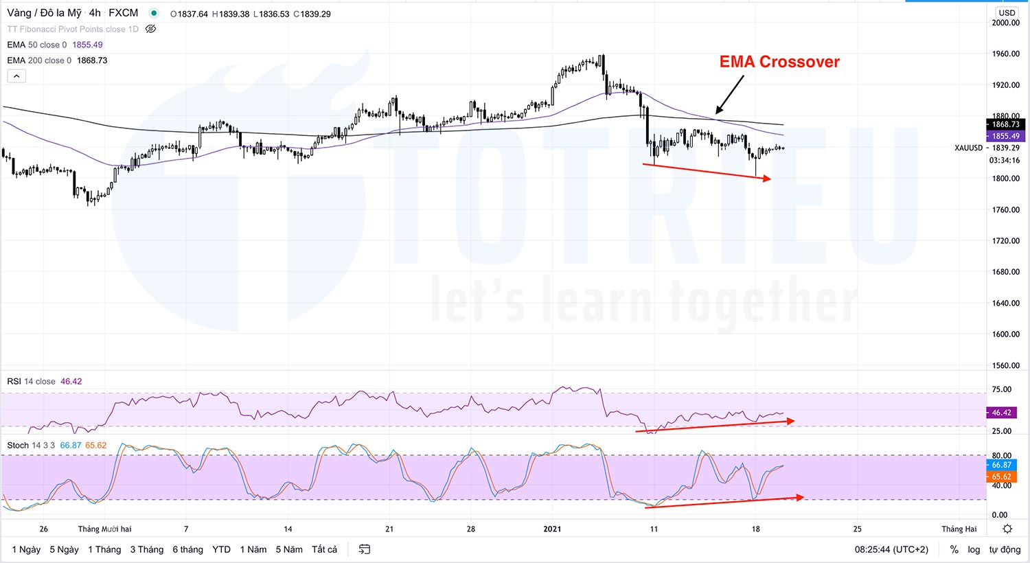Pivot Points tại $1827.74/oz trong khi giá mở cửa phiên giao dịch ngày 19-01-2021 là $1837/oz nên tâm lý thị trường ngày 19 – 20/01/2021 có thể sẽ tiếp tục đánh lên.