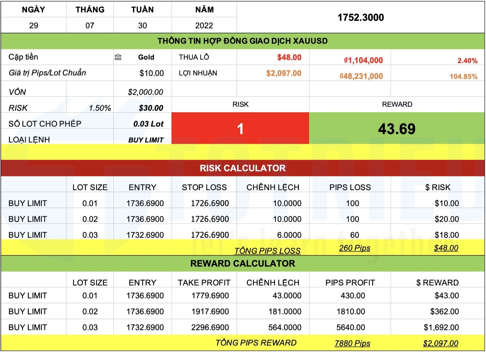 Tôi kỳ vọng sẽ mua vào tại $1736.69 và $1732.69 với mục tiêu $1779.96, $1917.69 và $2096.69 đặt cược vào thời điểm cuối năm 2022, Vàng có thể sẽ quay trở về ngưỡng $2000.