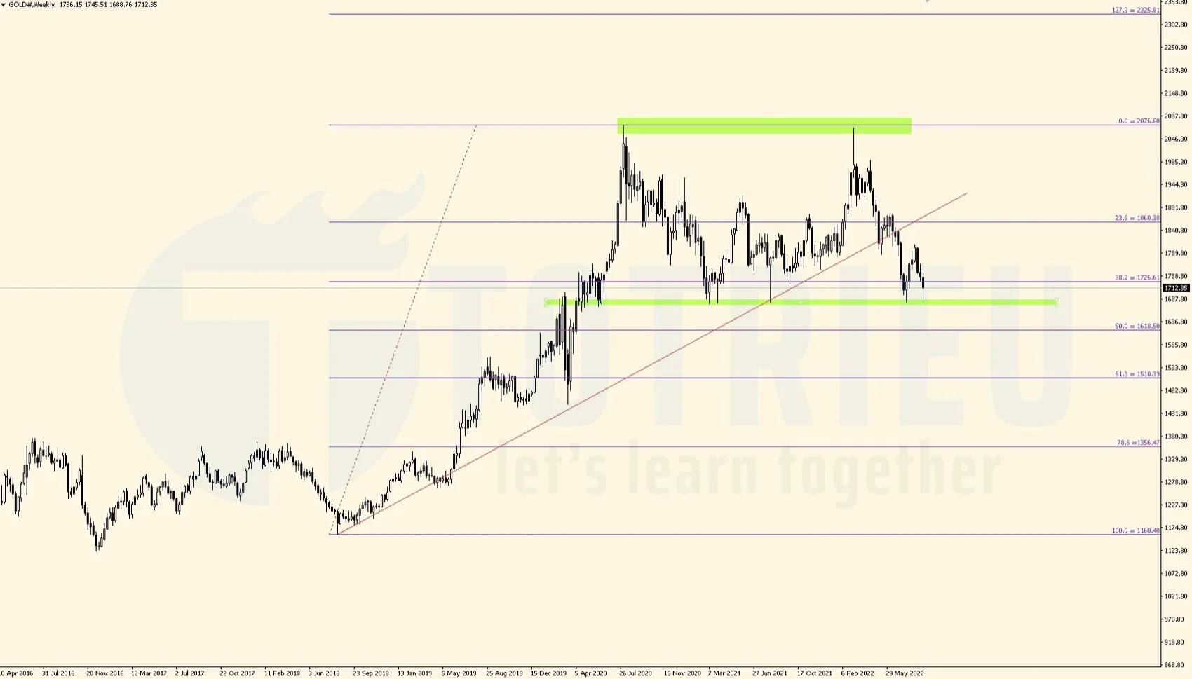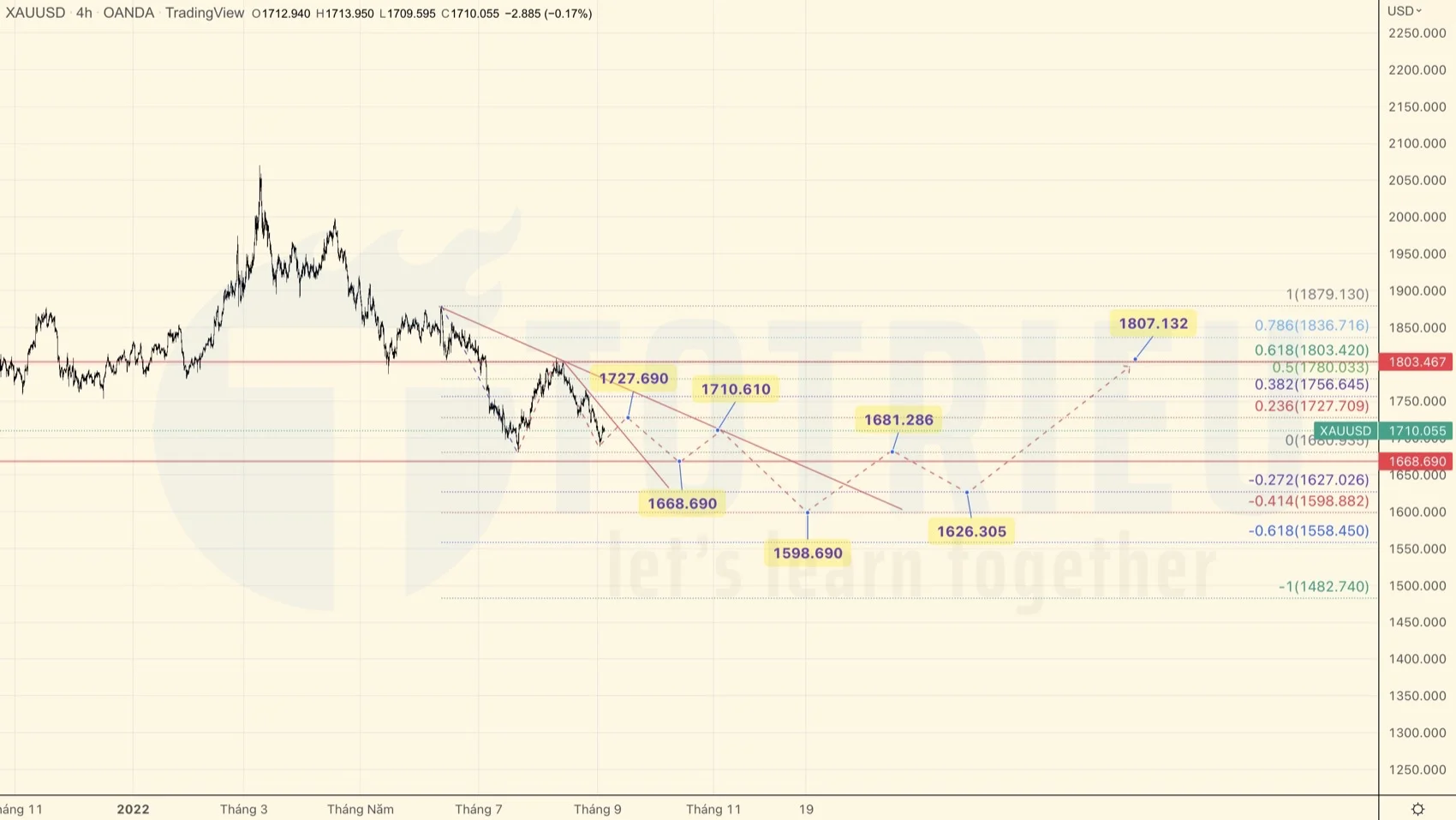 Tháng 09 năm 2022, Tôi kỳ vọng Vàng có thể giảm về ngưỡng $1668.69/oz sau đó có đợt phục hồi nhẹ sau khi FED tăng lãi suất khiến đợt chốt lời USD xuất hiện.