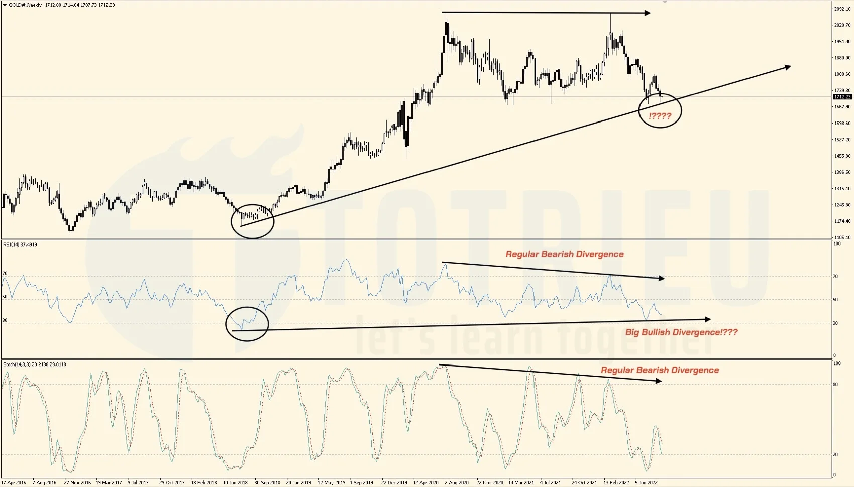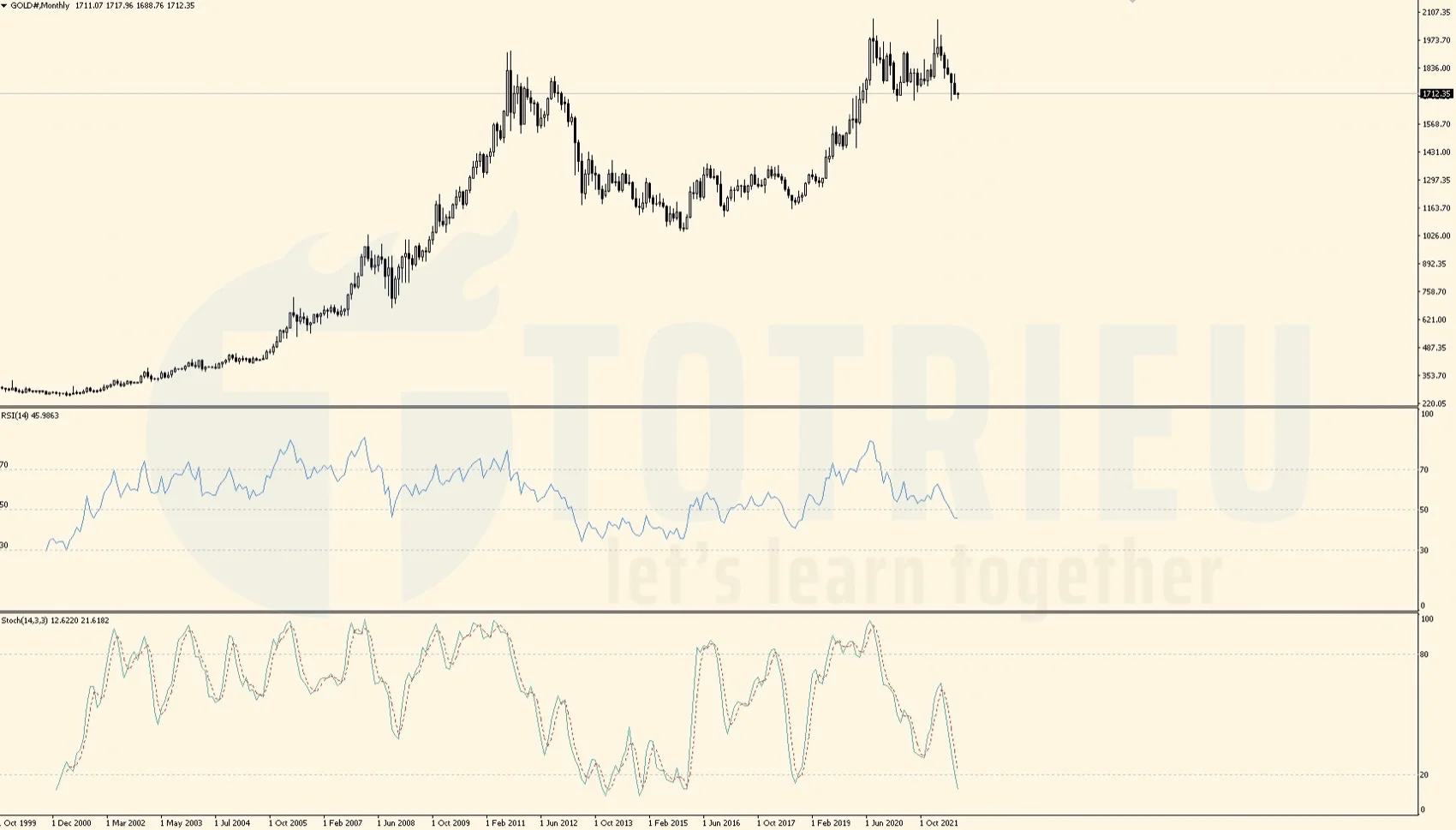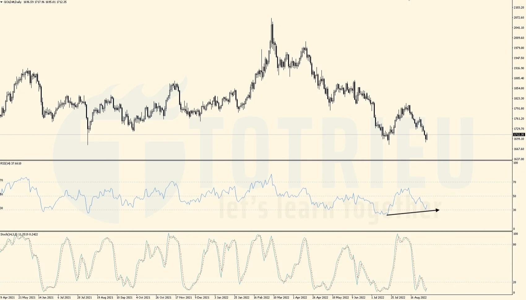 RSI và Stochastic trên khung tuần của XAUUSD tháng 09-2022 cho cùng tín hiệu:
