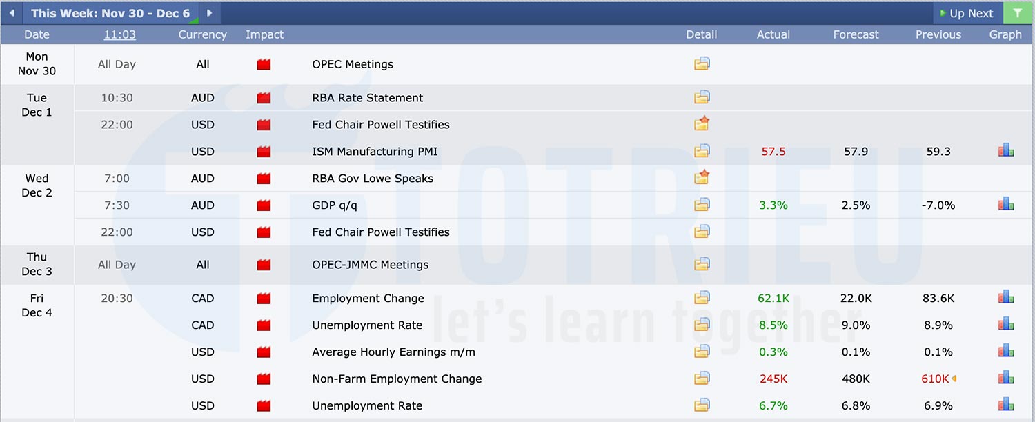 Bảng tin kinh tế tuần 49 năm 2020 với các tin tức tích cực cho đồng AUD, CAD. Tin tức tiêu cực chủ đạo hướng vào đồng USD.