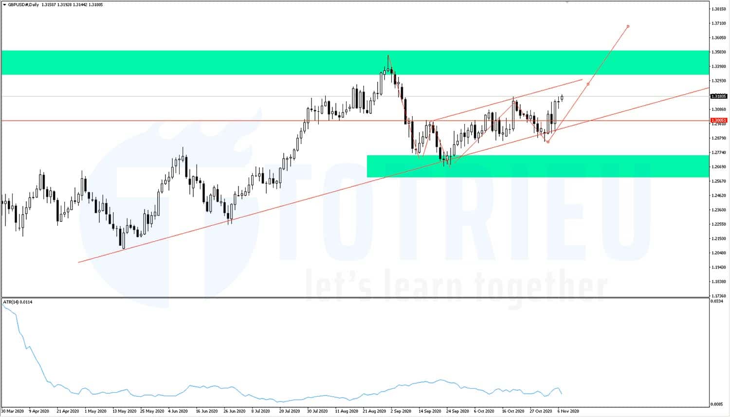 Tuần 46 năm 2020, Tôi tìm kiếm hỗ trợ và cơ hội mua lên ở vùng giá 1.3000 với các mục tiêu rất dài khi trên biểu đồ Tuần tín hiệu EMA đã xác nhận xu hướng tăng dài hạn.