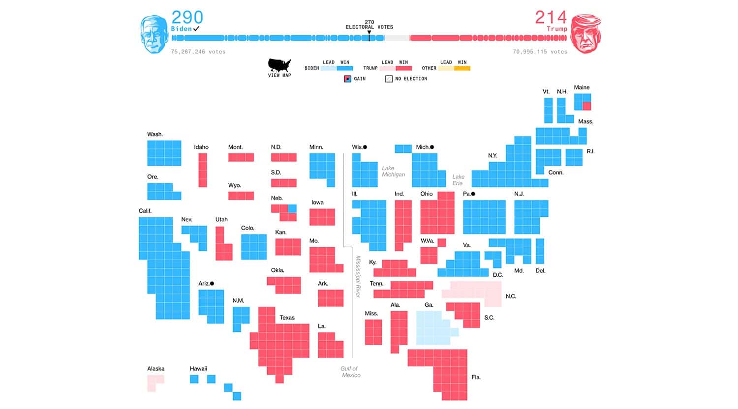 Hầu hết các hãng truyền thông lớn tại Hoa Kỳ cùng các lãnh đạo trên thế giới đã gửi lời chúc mừng tới ông Joe Biden – Người đã kiếm được ít nhất 290 phiếu Đại Cử Tri và sẽ là Tổng thống thứ 46 của Hoa Kỳ.