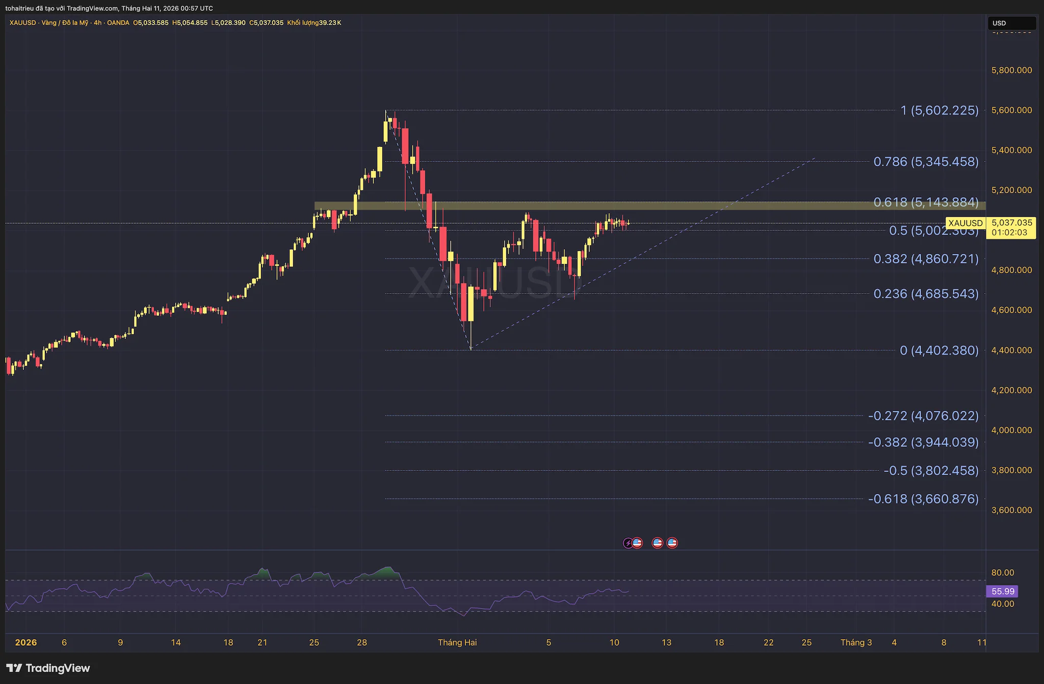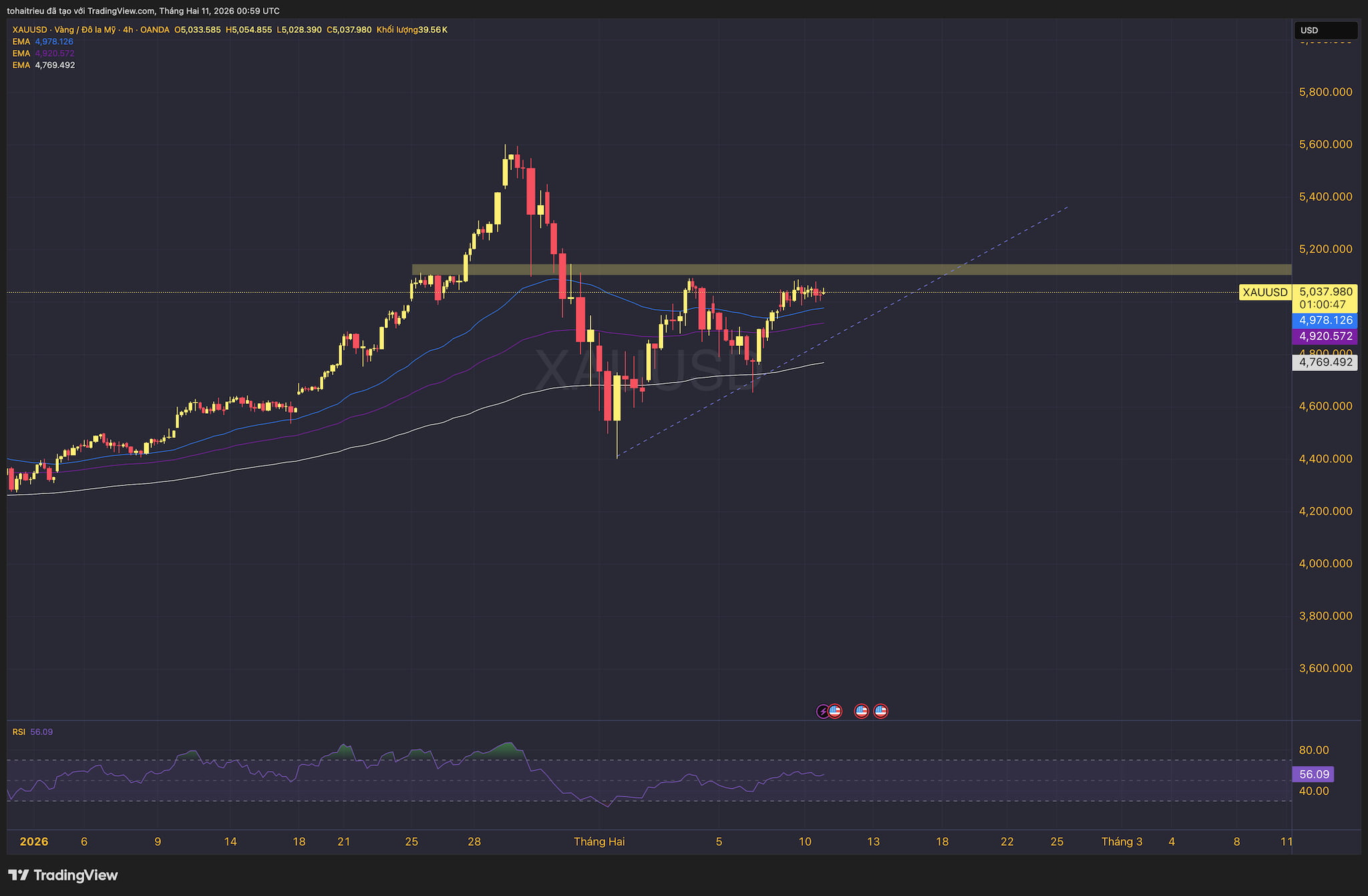 Giá vàng hiện đang biến động ở mức $5037 tại thời điểm phân tích, và đã đi ngang trong vài ngày qua.