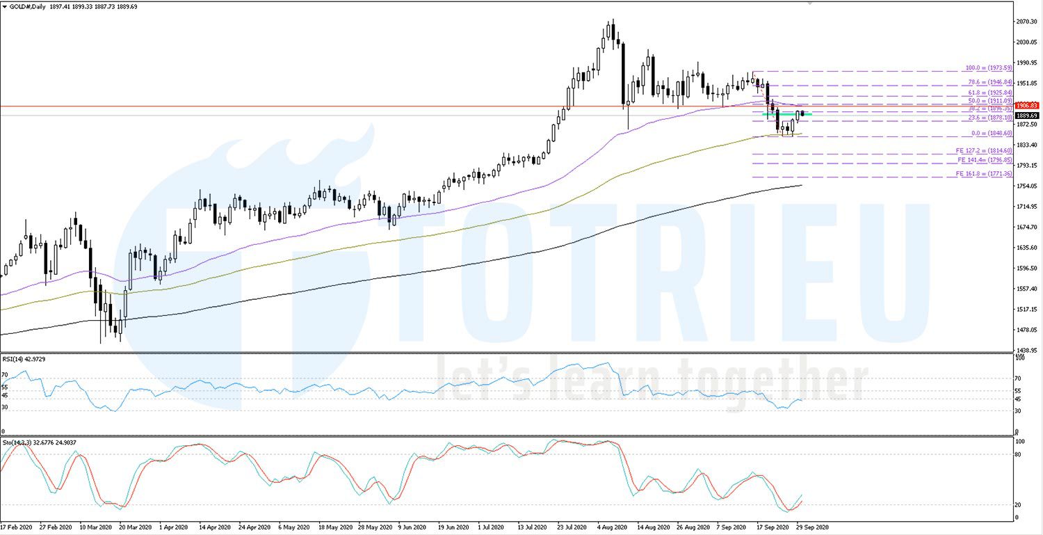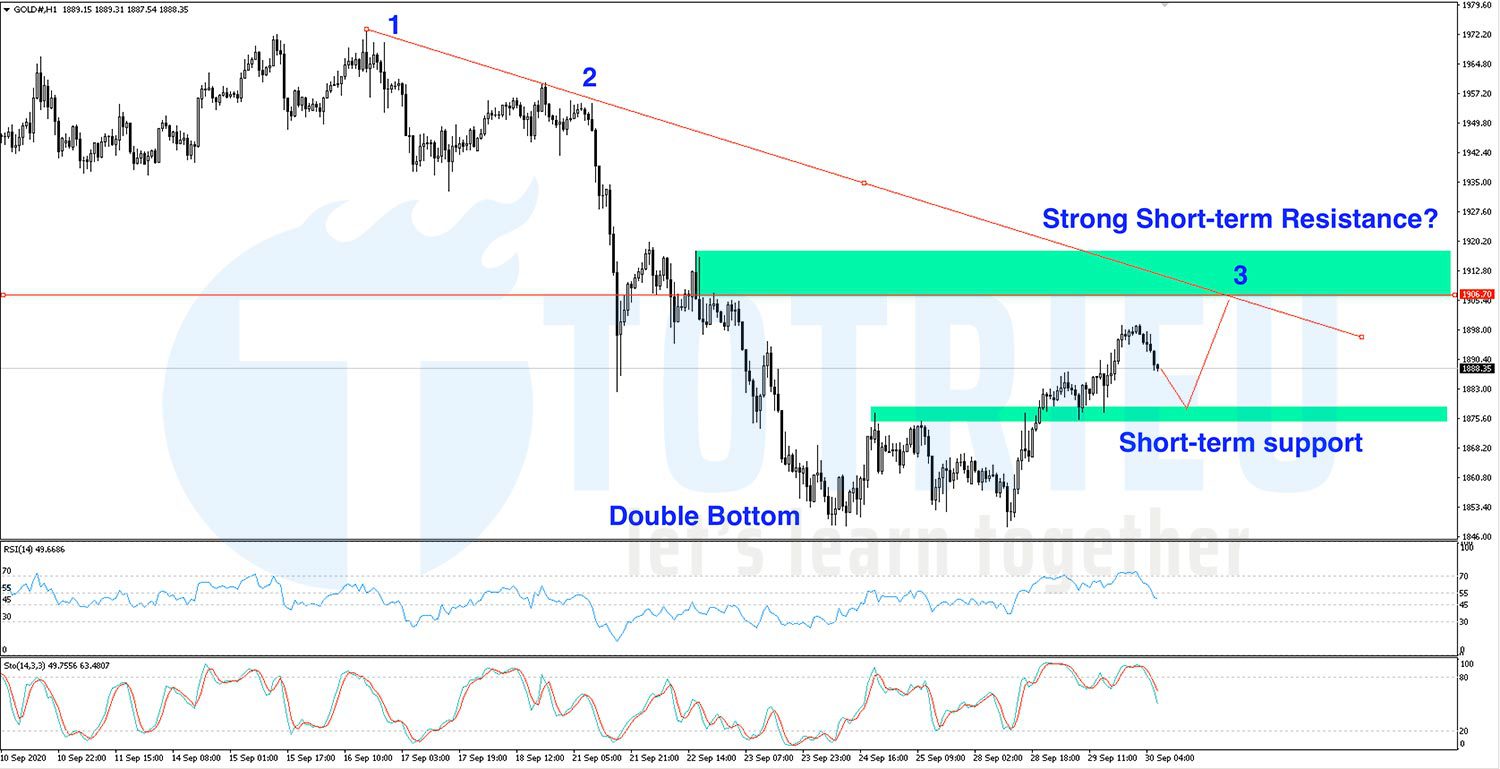 Giá Vàng – XAUUSD ngày 30-09-2020 đang có xu hướng kiểm tra lại 1907 sau khi chạm mức thấp nhất 2 tháng tại 1848.60.