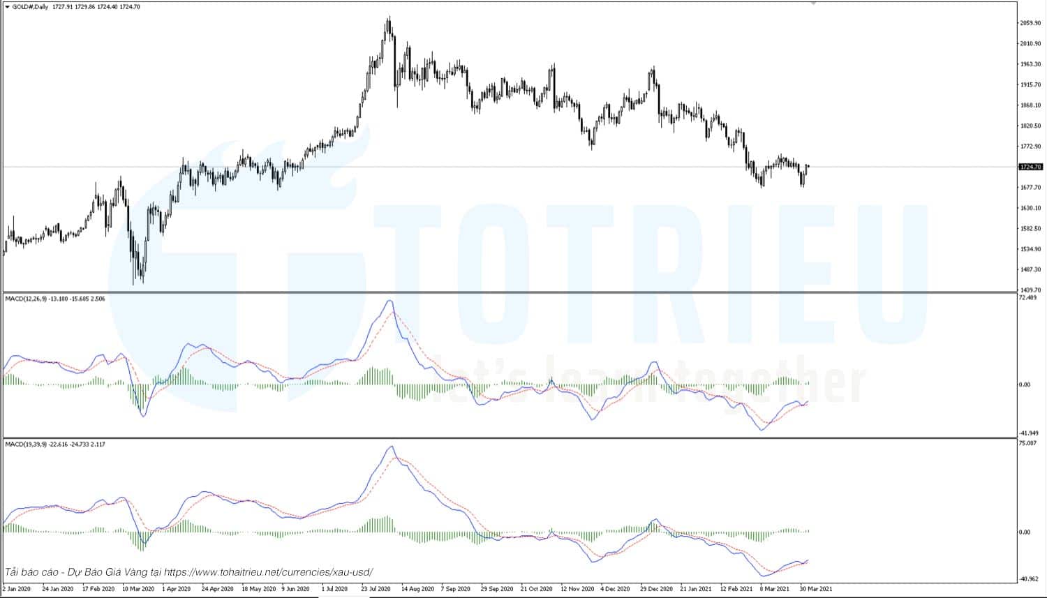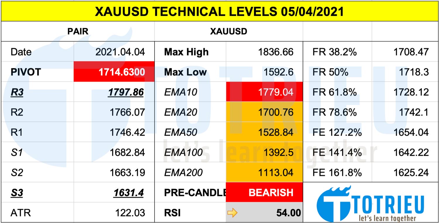 Pivot Points ở mức $1714.69/oz. Giá kết thúc tháng 03 đồng thời khép lại quý 1 năm 2021 là $1707/oz cho thấy tín hiệu không thực sự chắc chắn của thị trường.