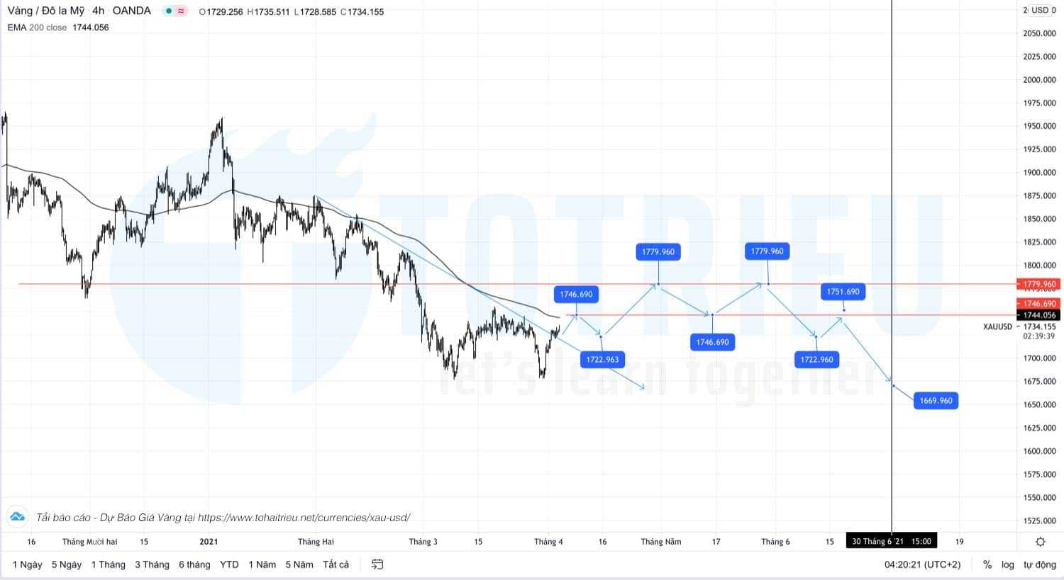Phần lới thời gian của quý 2 năm 2021, Vàng có thể biến động trên mức $1721. Đà tăng bị hạn chế tại $1779.96 – $1788.96.