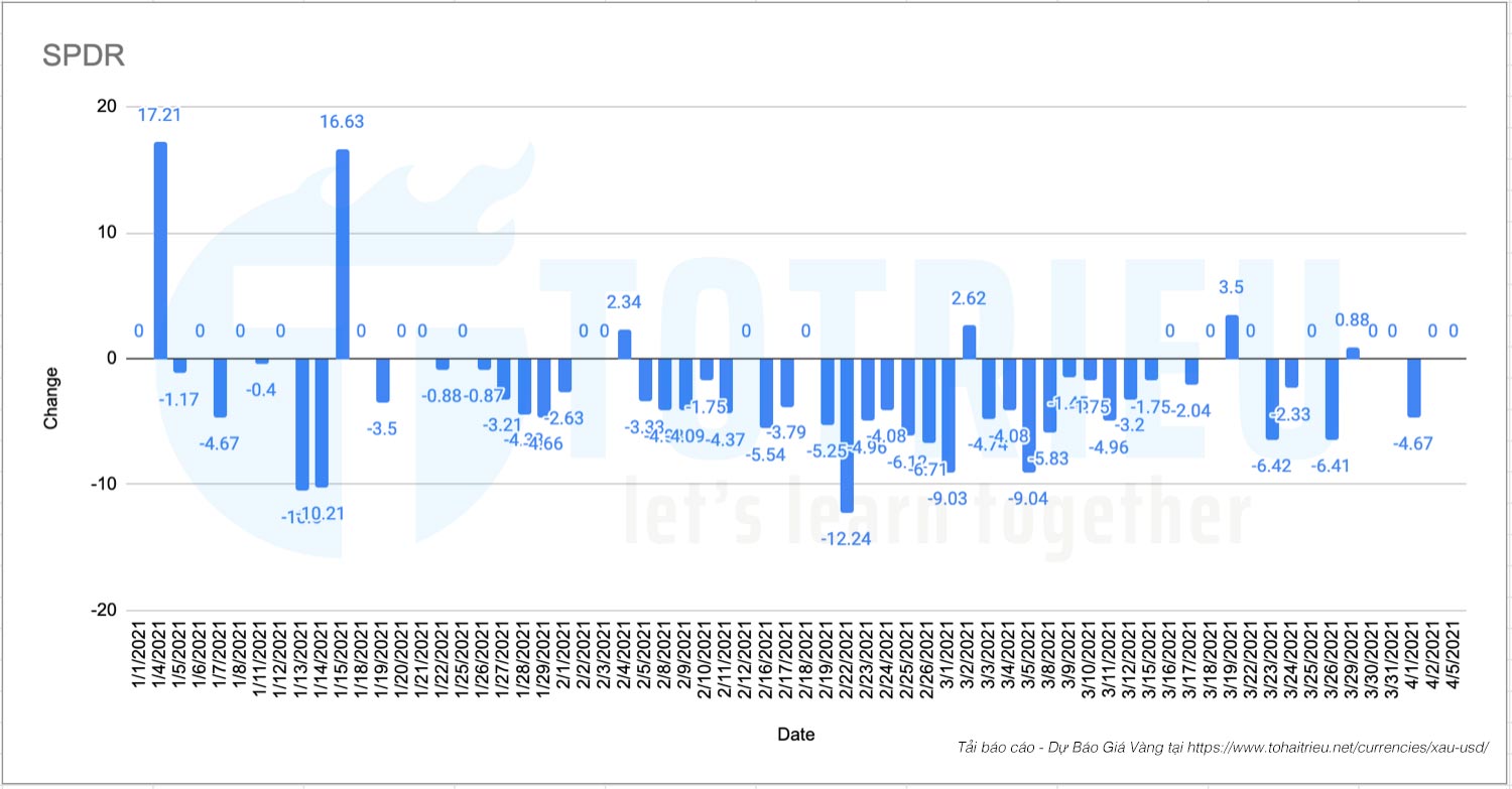 Khoảng thời gian thanh xuân còn lại của quý 1 năm 2021, SPDR chỉ nhẩn nha Bán Vàng với tổng lượng bán cho năm 2021 đã lên tới 181.09 tấn.