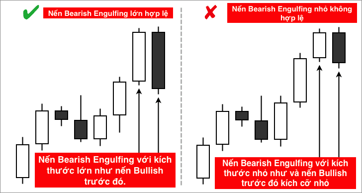 - Nến Bearish Engulfing phải có kích cỡ tương đồng với khoảng 10-15 nến trước nó.