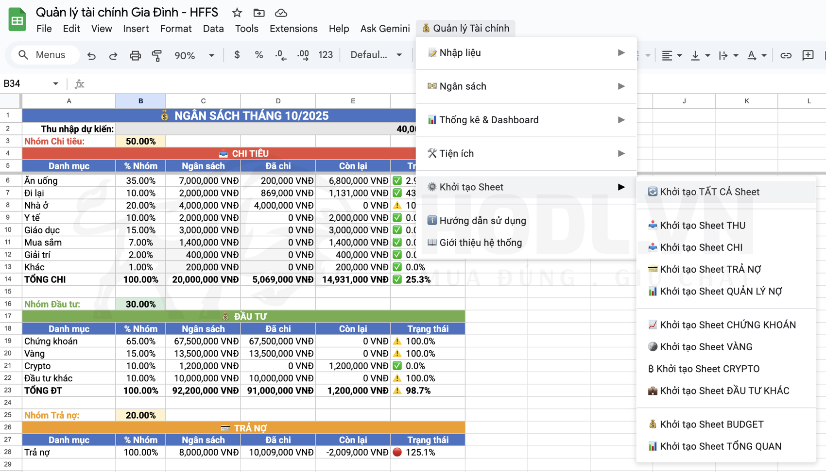 Trước khi vào Phần hỗ trợ khởi tạo, bạn cần có bản sao riêng của HFFS trong Google Sheet.
