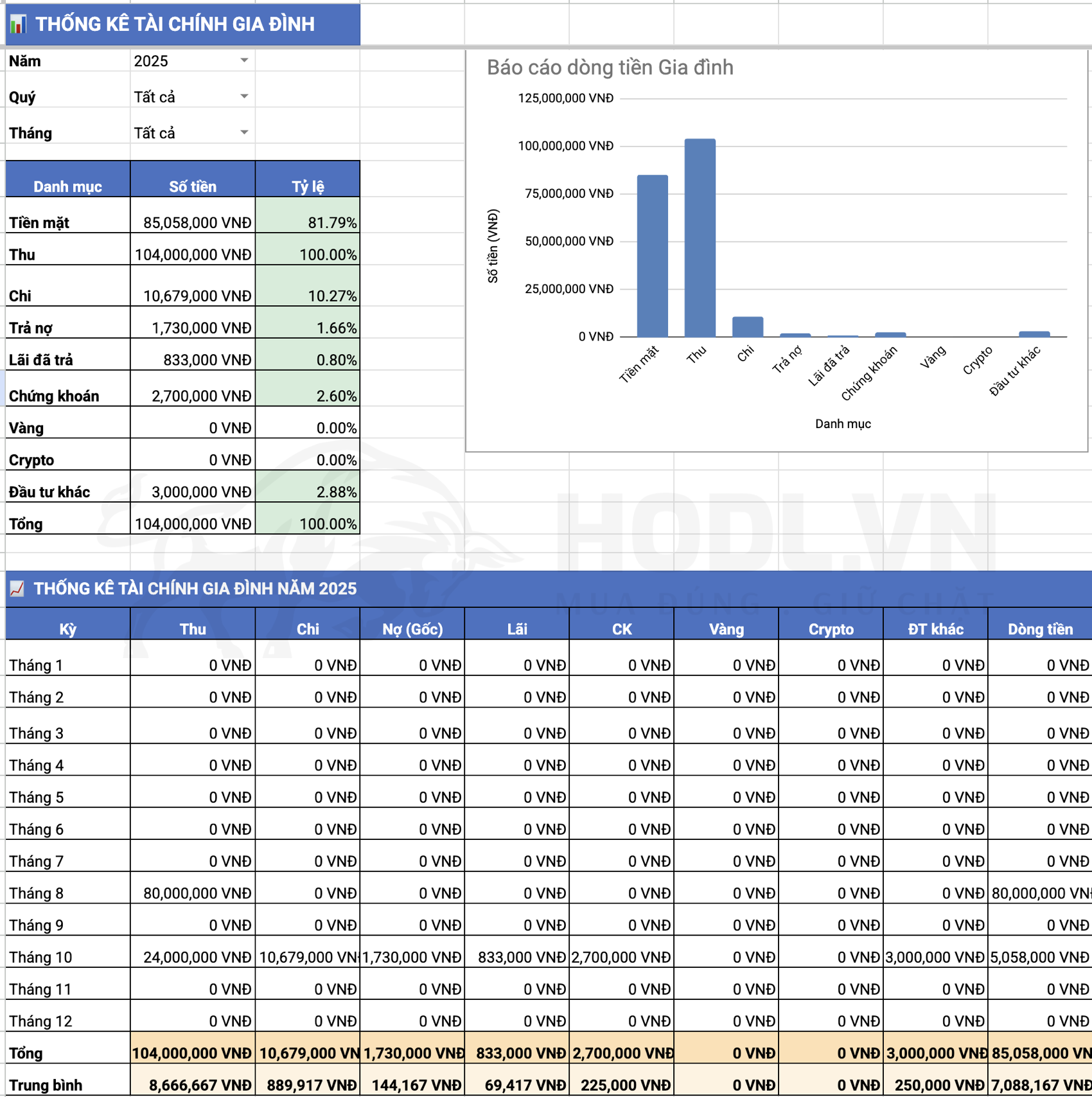 | 2 | Chi tiêu | CHI | Theo dõi chi phí theo 10 danh mục (ăn uống, đi lại, nhà ở, y tế…) |