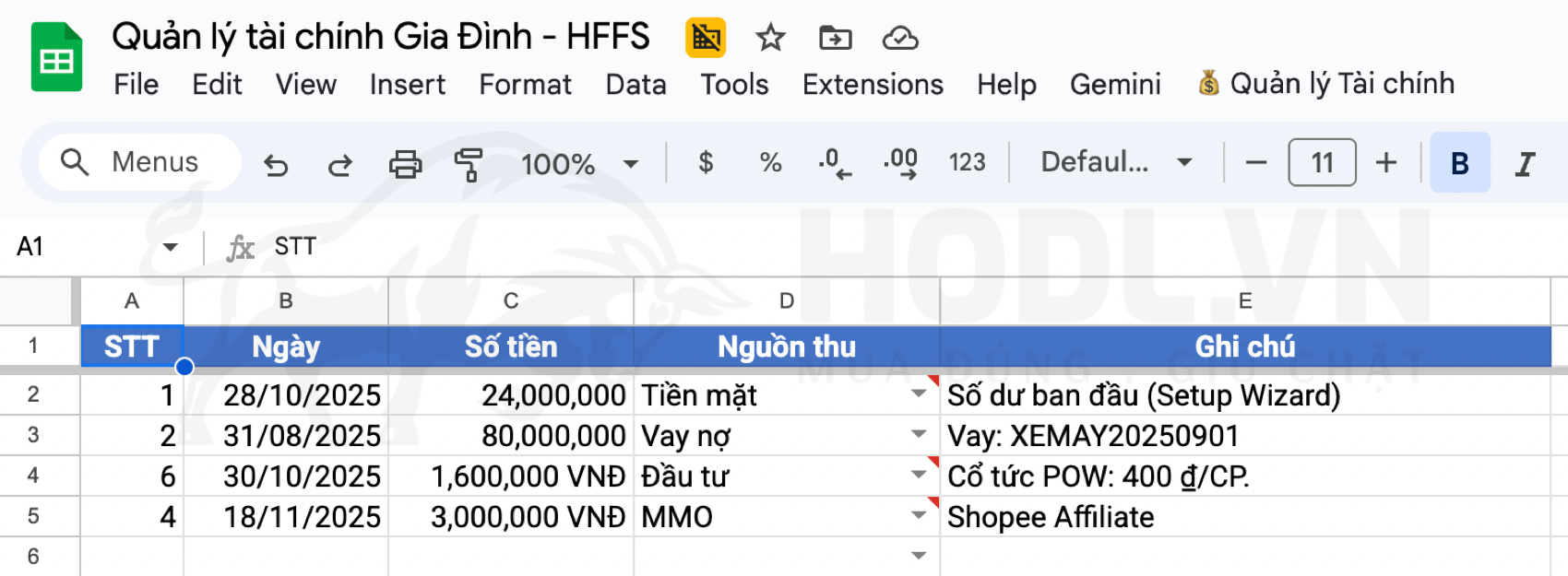 Thứ hai, mở Google Sheet HFFS lên, ghi lại tất cả thu nhập và chi tiêu của 7 ngày qua bằng cách chép từ lịch sử ngân hàng. Có thể một số khoản tiền mặt bạn không còn nhớ, không sao. Ghi những gì có trong lịch sử ngân hàng là đủ. Mục tiêu không phải là "hoàn hảo", mà là "bắt đầu".