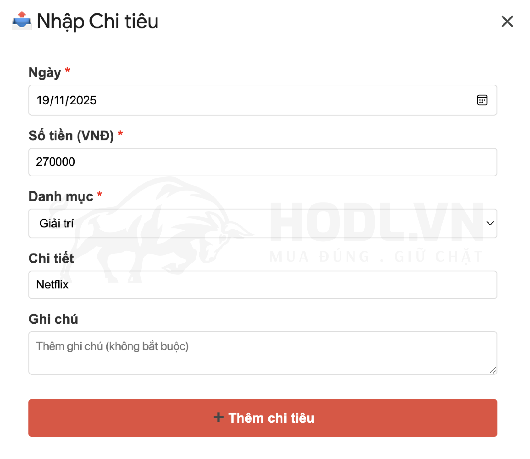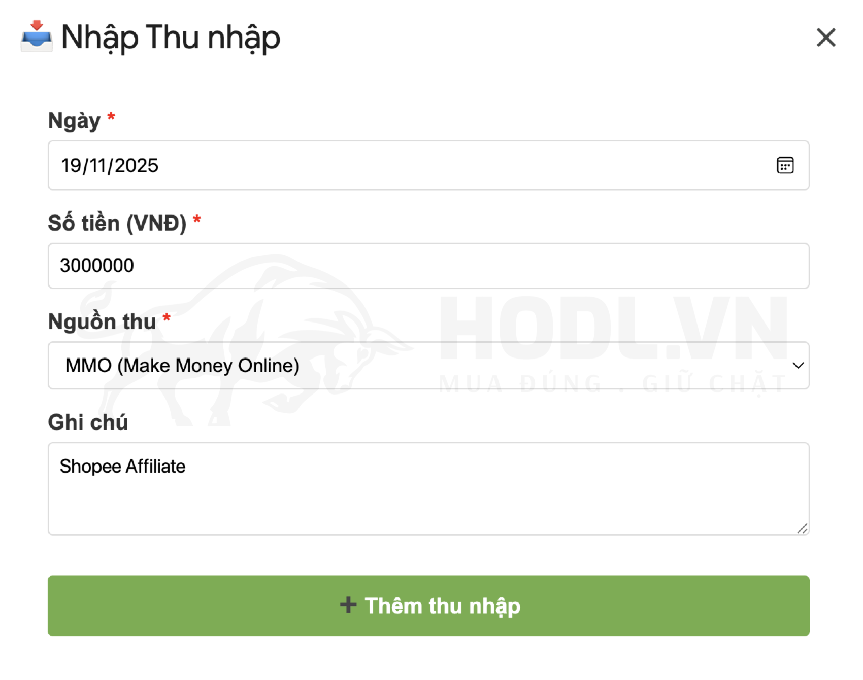 Nhấn "Thêm thu nhập". Xong.