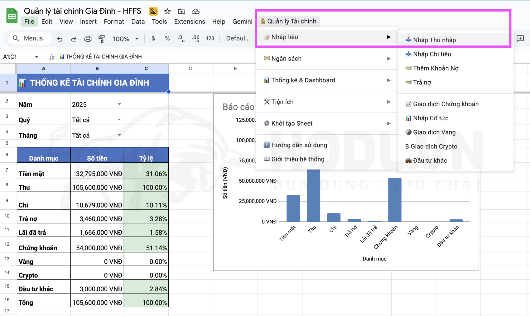 "Ồ, hôm nay chỉ có 4 giao dịch thôi à?" Chị mỉm cười, mở Google Sheet lên, và bắt đầu với Menu "Quản lý Tài chính" → "Nhập Chi tiêu".