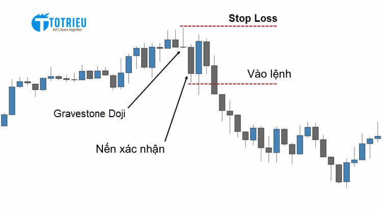 Thay vì nhảy vào thị trường ngay lập tức, khi Gravestone doji xuất hiện lần đầu tiên, bạn sẽ chờ đợi một tín hiệu nến xác nhận. Để khẳng định xu hướng giảm sẽ diễn ra.