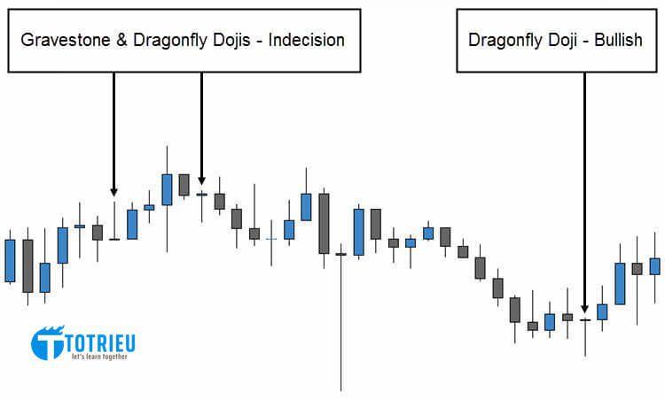 2. Ví dụ về Dragonfly Doji và Gravestone Doji
