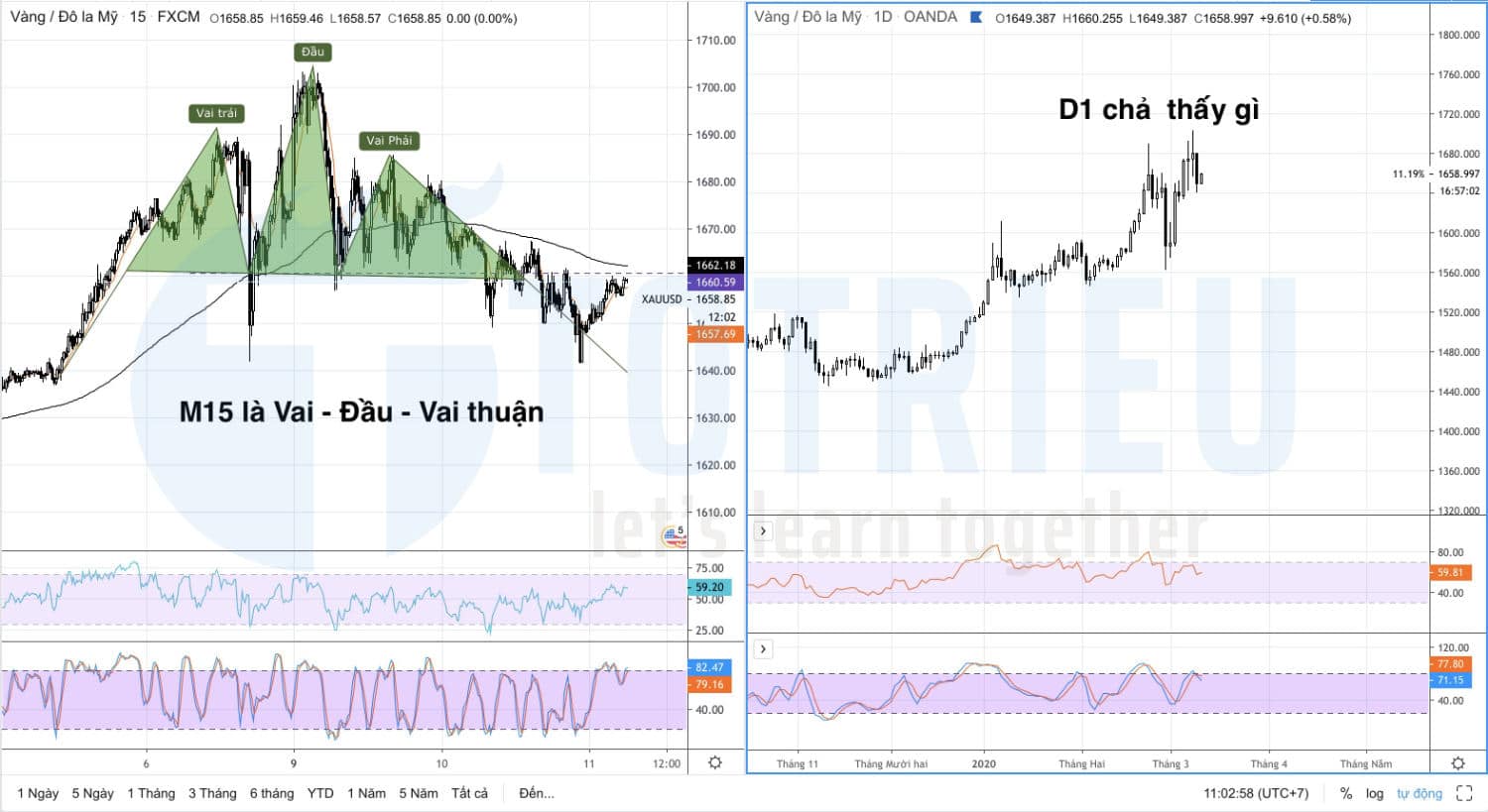 Còn trên Timeframe nhỏ thì mô hình xuất hiện và nhận biết vô cùng rõ ràng.