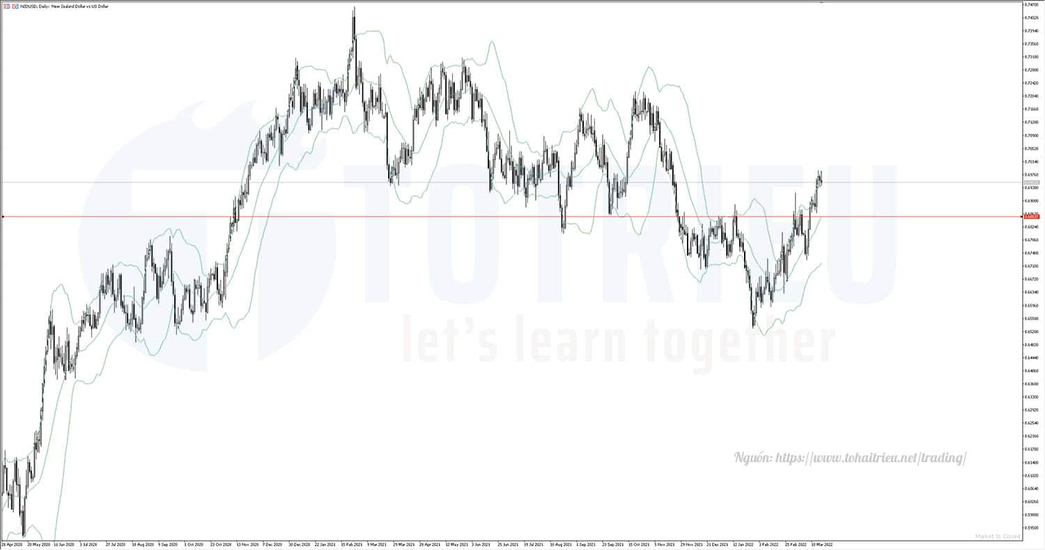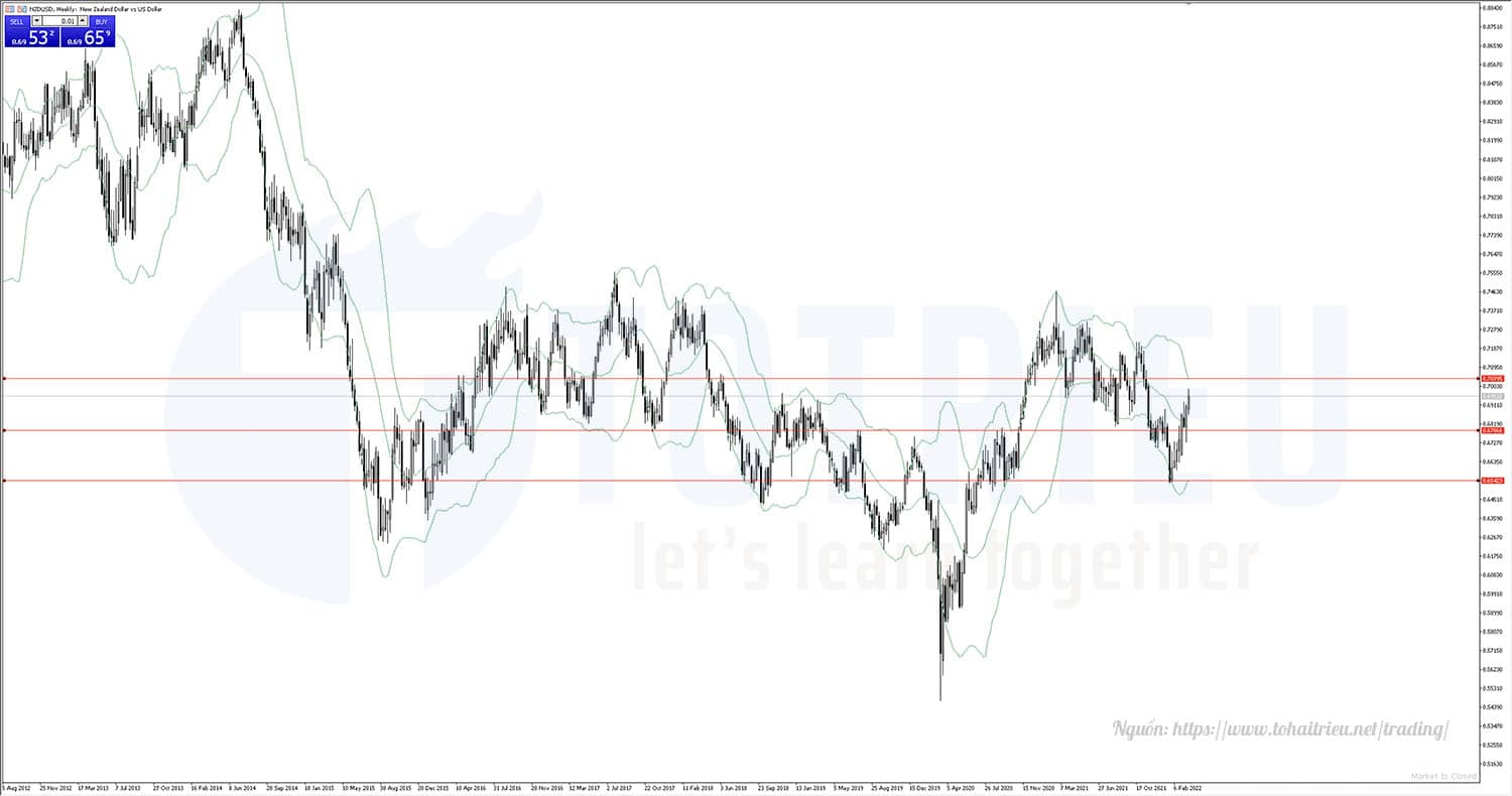 Kháng cự – Band trên tại vùng tròn số tâm lý 0.7000. Như vậy 0.7000 sẽ là vùng cực kỳ khó chịu với NZDUSD Q2-2022. Nếu muốn tăng mạnh trở lại bắt buộc NZDUSD phải phá được kháng cự tâm lý này.