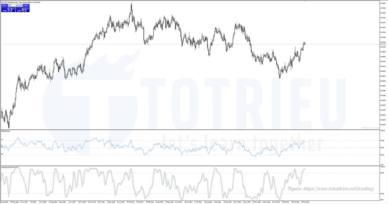 RSI và Stochastic đều đang cho tín hiệu khá tích cực với phe Bull NZDUSD. RSI đã vượt lên mức 50 và nằm trong lãnh thổ của phe Bull trong khi Stochastic đang tăng mạnh.