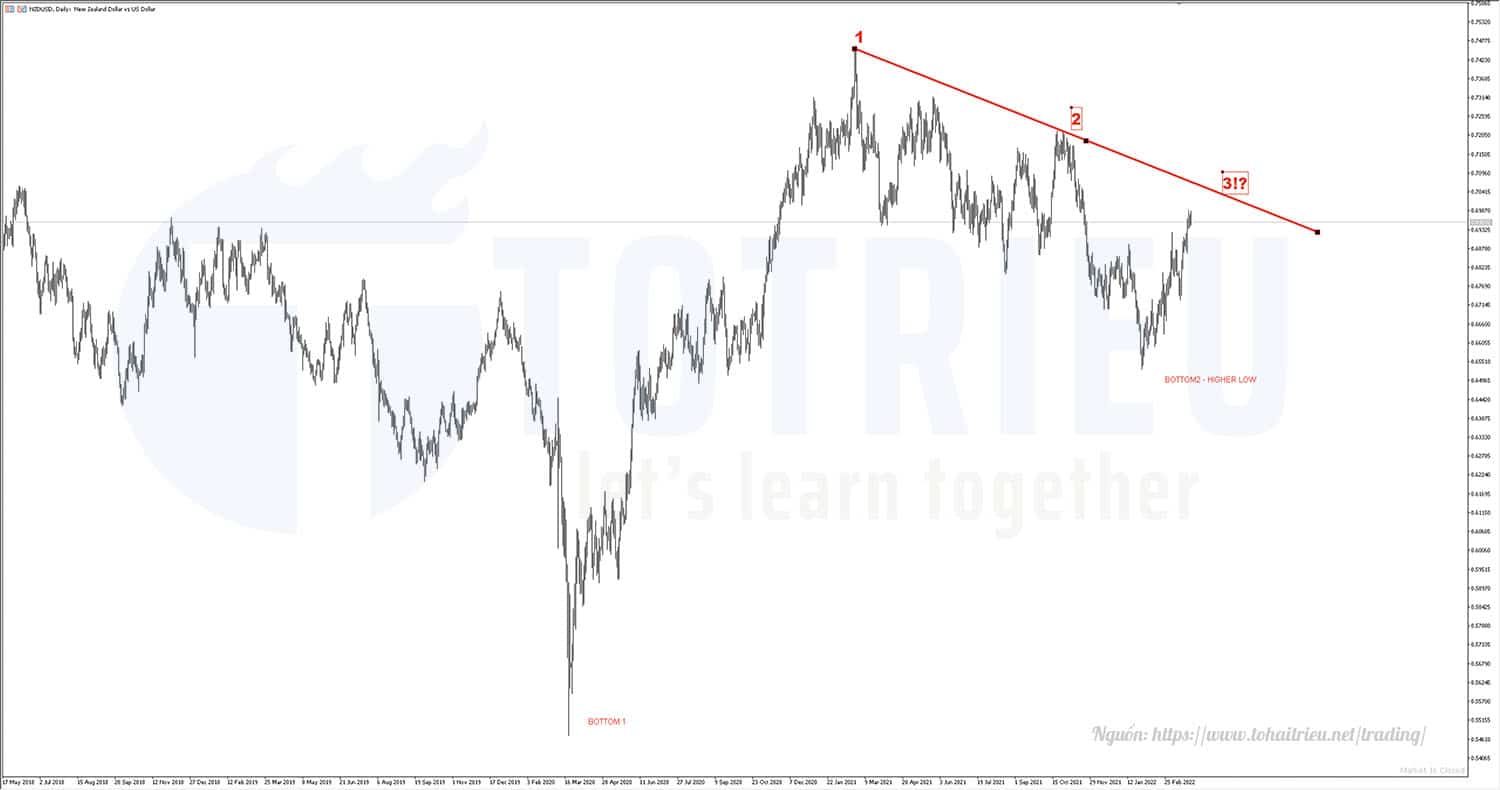 Tuy nhiên, đường xu hướng giảm điều chỉnh trung hạn sẽ là rào cản đáng kể cho NZDUSD trong Q2-2022 vì đây cũng là thời điểm NZDUSD tiếp cận đường xu hướng giảm này lần thứ 3, thời điểm mà phe Bear rất hào hứng để tham gia thị trường.