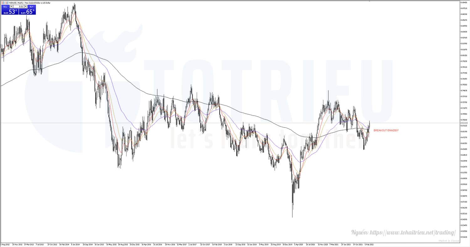 Đường EMA200 có thể sẽ là trung tâm nếu NZDUSD tích luỹ ở vùng giá này.