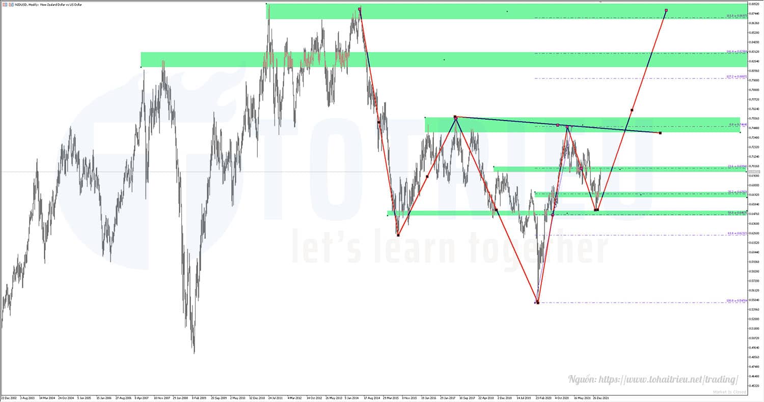 - Fibo 61.8% tại 0.6200 – 0.6250 là chốt chặn cuối cùng. Nếu phá vỡ mức này, NZDUSD sẽ quay trở lại Bear Market trong dài hạn.