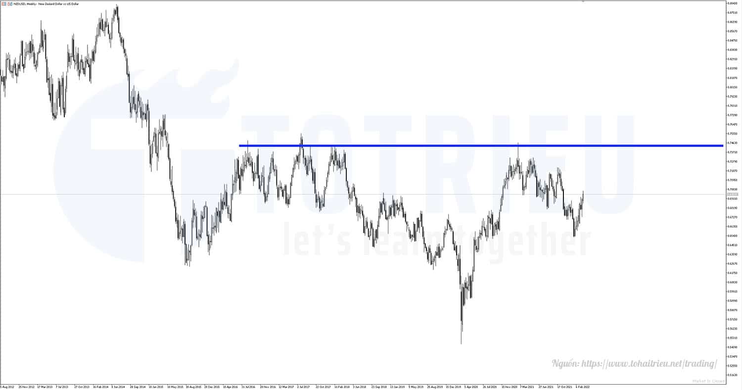 Kháng cự gần nhất bây giờ sẽ là đường Neckline đồng thời là kháng cự ngang quan trọng mà ngay khi tiếp cận vào tháng 07-2021, NZDUSD đã điều chỉnh ngay lập tức – Vùng giá 0.7468.