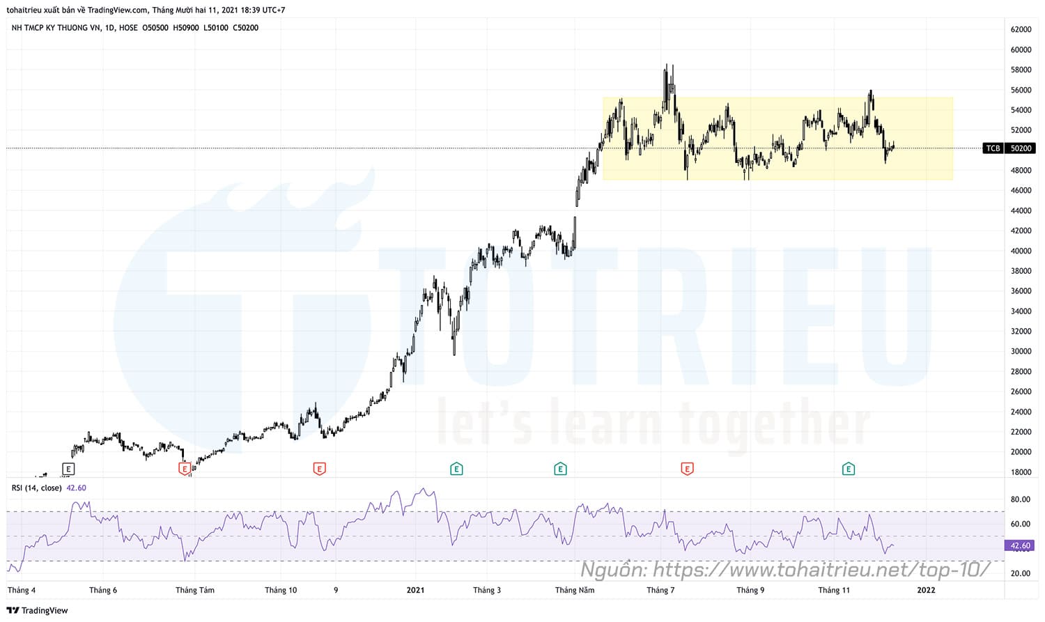 - Vùng giá quan trọng: 46.000đ là hỗ trợ mô hình, 56.000đ là kháng cự mô hình.