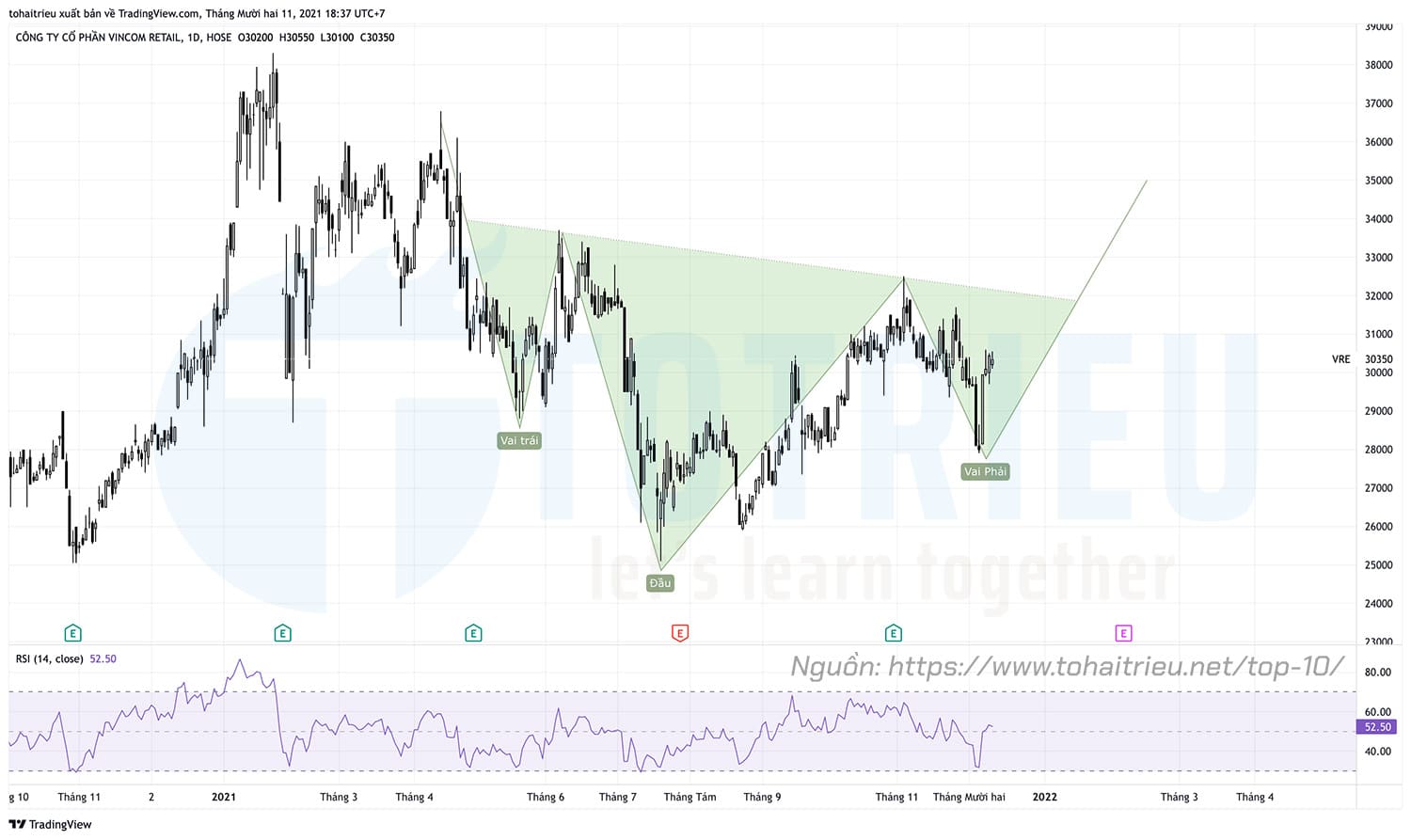 - Vùng giá quan trọng: 28.000đ/cp là hỗ trợ vai phải và 32.000đ/cp là neckline.
