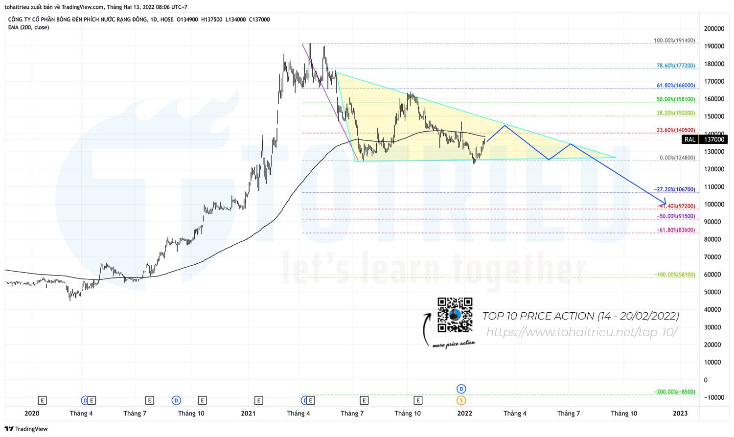 - Mục tiêu nếu đúng: Nếu phá vỡ hỗ trợ 124.000đ, RAL có thể giảm về Fibo mở rộng 141.4% tại 100.000đ/cp