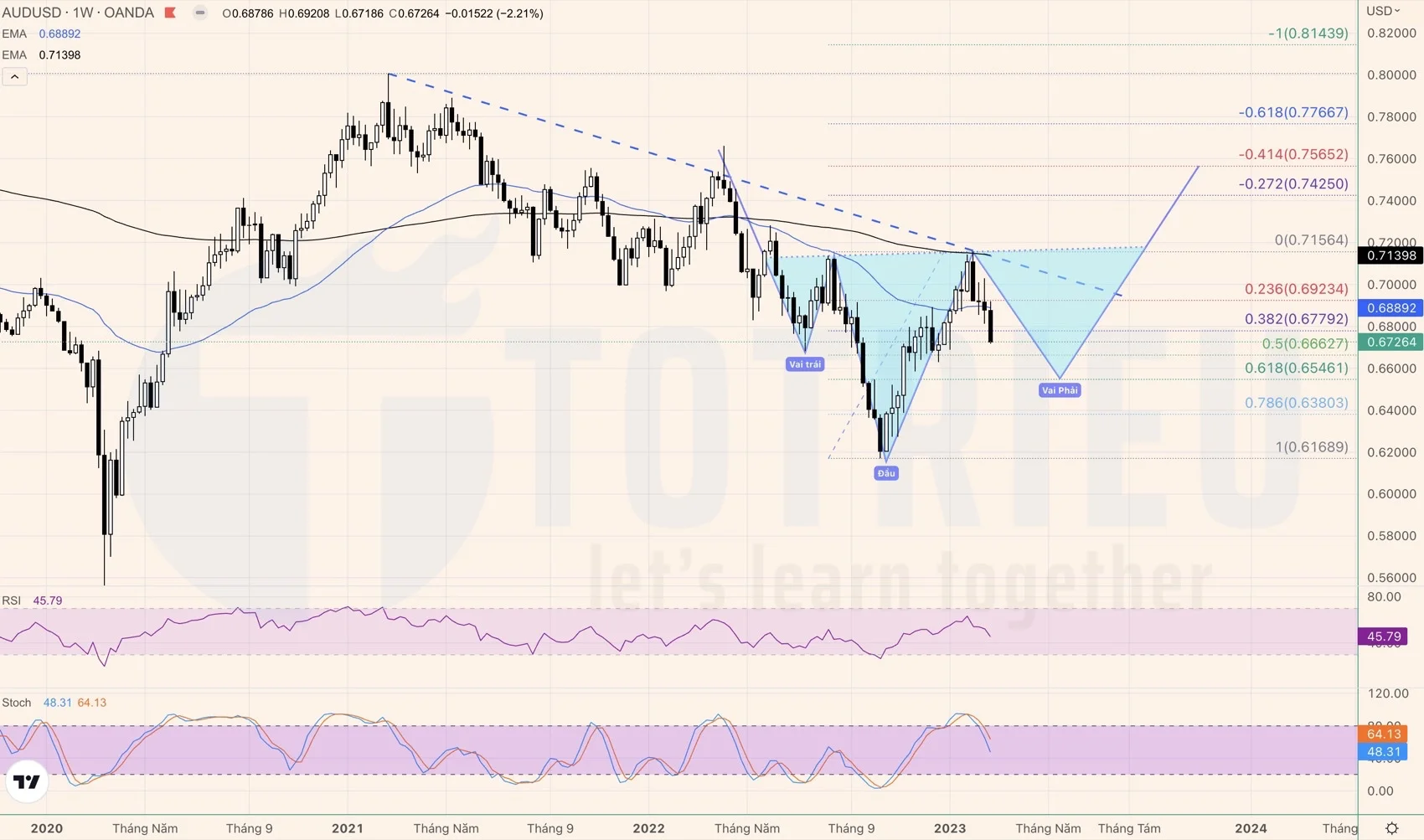 - Mục tiêu nếu đúng: Kiểm tra lại hỗ trợ 0.6500 – 0.6550 sau đó tăng trở lại các kháng cự 0.6900, 0.7000, 0.7400 vào cuối năm 2023