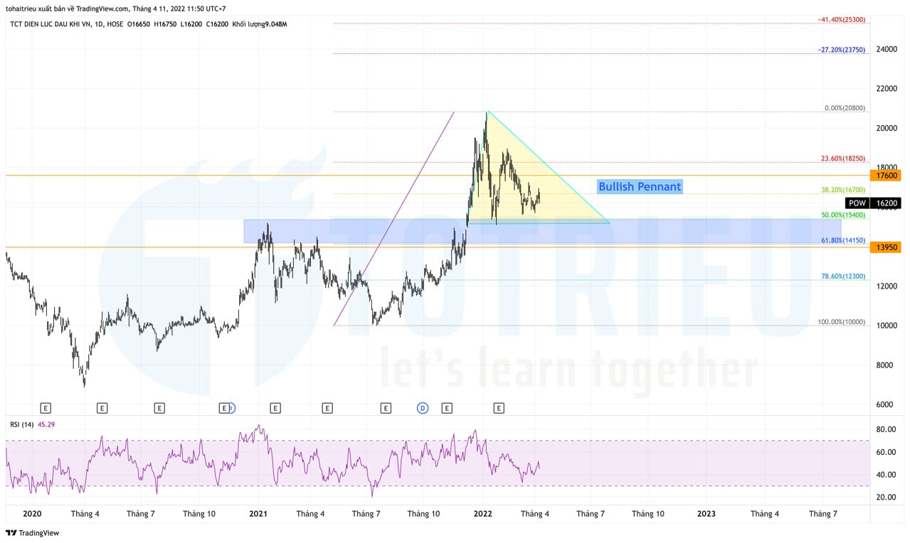 - Mục tiêu nếu đúng: Sụt giảm kiểm tra hỗ trợ 13.500đ – 15.000đ sau đó tăng trưởng trở lại và tiếp cận đỉnh ở 20.800đ. Nên chờ mua POW tại hỗ trợ và nắm giữ trong dài hạn.